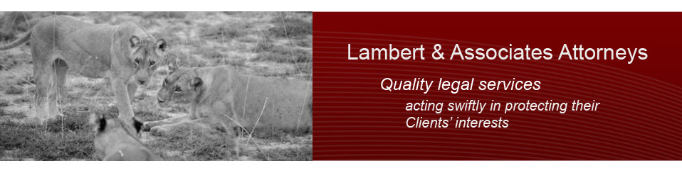 LAMBERT ATTORNEYS' biggest asset is their ability to offer realistic and sustainable advice and to act swiftly in protecting their Clients' interest.